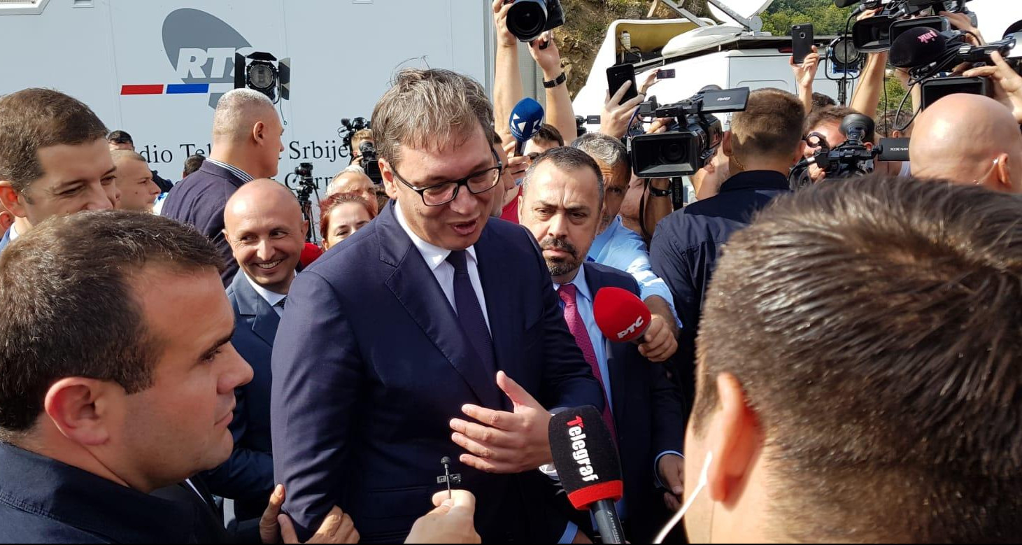 Vučić je, odgovarajući na pitanja novinara o tome kako se oseća danas po dolasku na sever Kosova, rekao da je ponosan i srećan što je razgovarao i sa mladima, sa radnicima. . . i da im nosi pozdrave svakoga građanina Srbije.