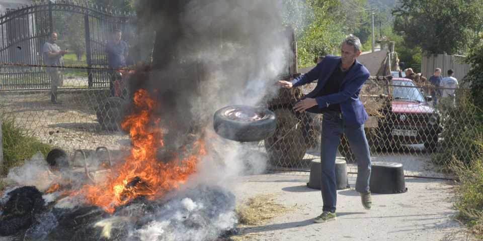 9.22 - Na zapaljenim barikadama je gradonačelnik Srbice Bekim Jašari, bratanac zloglasnog komandanta OVK iz Drenice Adema Jašarija.