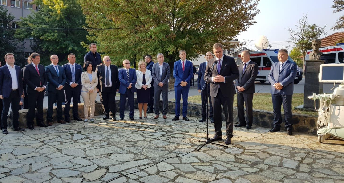 Predsednik Srbije, Aleksandar Vučić, stigao je u pratnji direktora Kancelarije za KiM, Marka Đurića i ministra zdravlja Zlatibora Lončara, u Klinički centar u Kosovskoj Mitrovici.