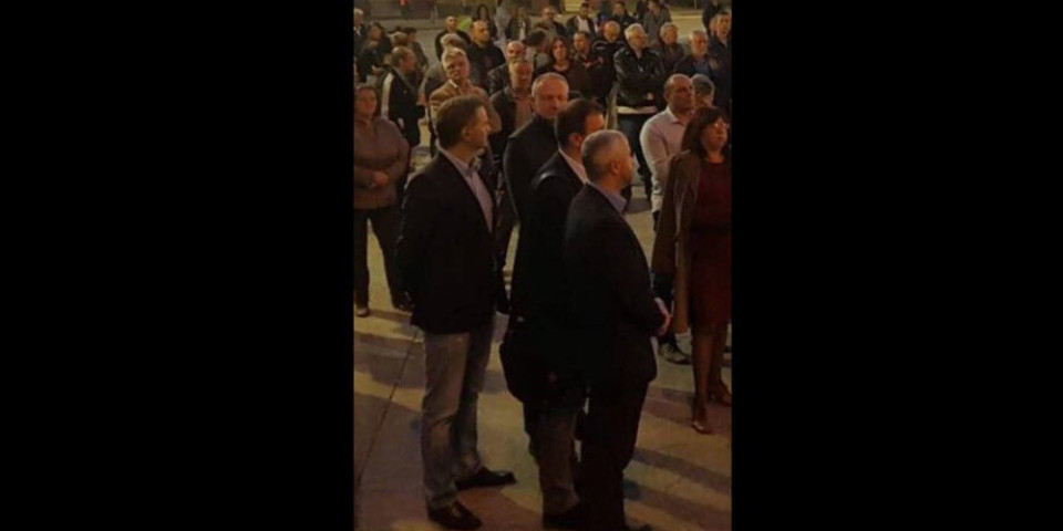 Ne bi li sprečili katastrofu, Dragan Đilas i Borko Stefanović brzo su uskočili u pomoć kolegi, pa su glumili publiku dok je Boško držao govor.