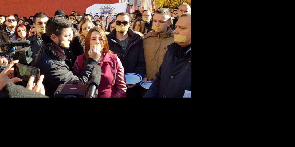 Studenti su protest počeli petominutnim ćutanjem, a na ustima su nosili flastere kao poruku da štura saopštenja povodom neprihvatljivih mera Prišttine smatraju praktično ćutanjem.