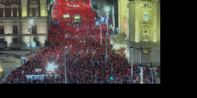 Pogledajte dobro ove fotografije. Crvenim tačkama označeni su svi prisutni pojedinačno. A njih je, kako ove fotografije jasno dokazuju, na Slaviji bilo 2.900, a ispred Narodnog pozorišta 3.250. I to je to.