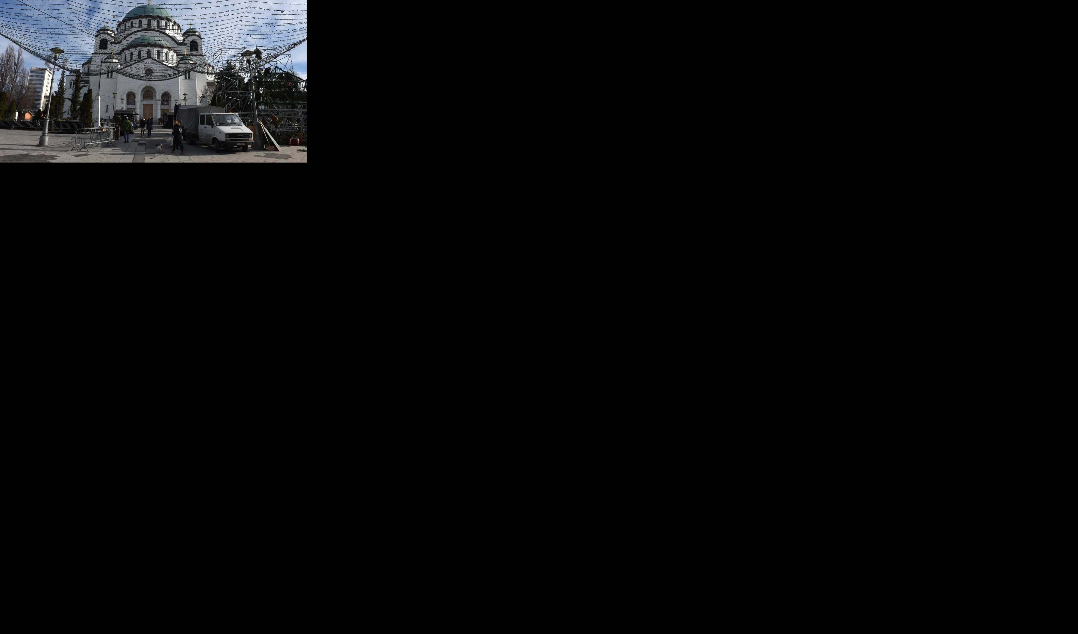 Ispred Hrama Svetog Save postavljeni su već bina i LED ekrani, radnici sređuju oštećene ploče na platou i okolnim stazama i usisavaju lišće, a primetno je i prisustvo pripadnika policije i Žandarmerije.
