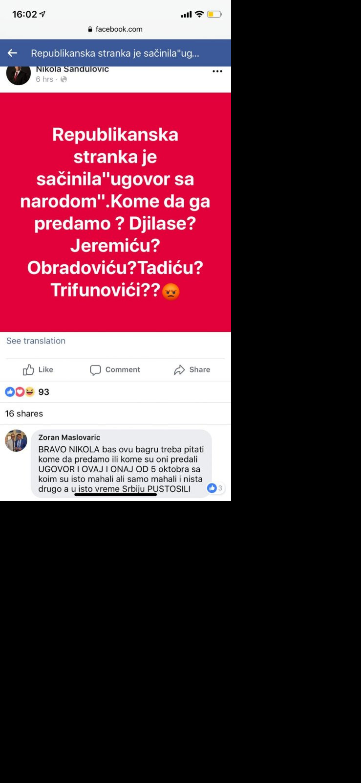 - Kome su predali ovaj ugovor i onaj od 5. oktobra sa kojim su mahali dok su samo pustošili Srbiju? - bio je jedan od komentara.