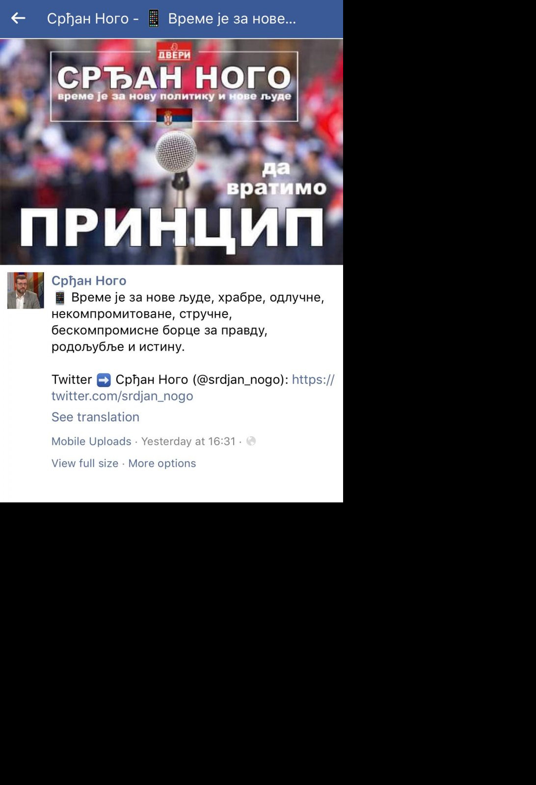 - Vreme je za nove ljude, hrabre, odlučne, nekompromitovane, stručne, beskompromisne borce za pravdu, rodoljublje i istinu - napisao je Nogo, čiju inicijativu podržava sve veći broj članova Dveri, dok Boška podržava samo njegov novi mentor Dragan Đilas.