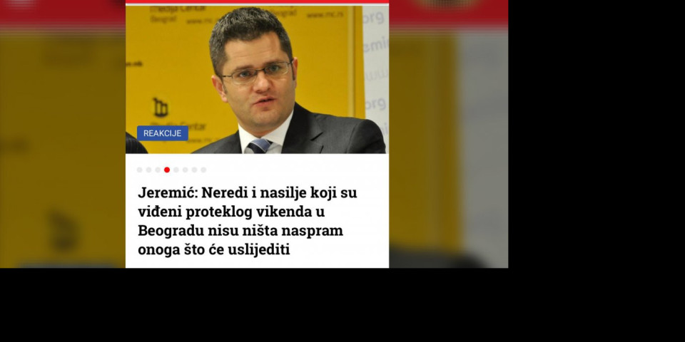 Ugledni sarajevski dnevik Avaz u svom online izdanju objavio je izjavu Vuka "roleks" Jeremića koji kaže da "neredi i nasilje koji su viđeni prošlog vikenda u Beogradu nisu ništa u odnosu na ono što će uslediti"!