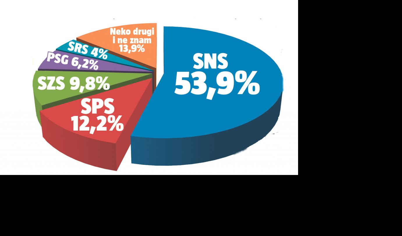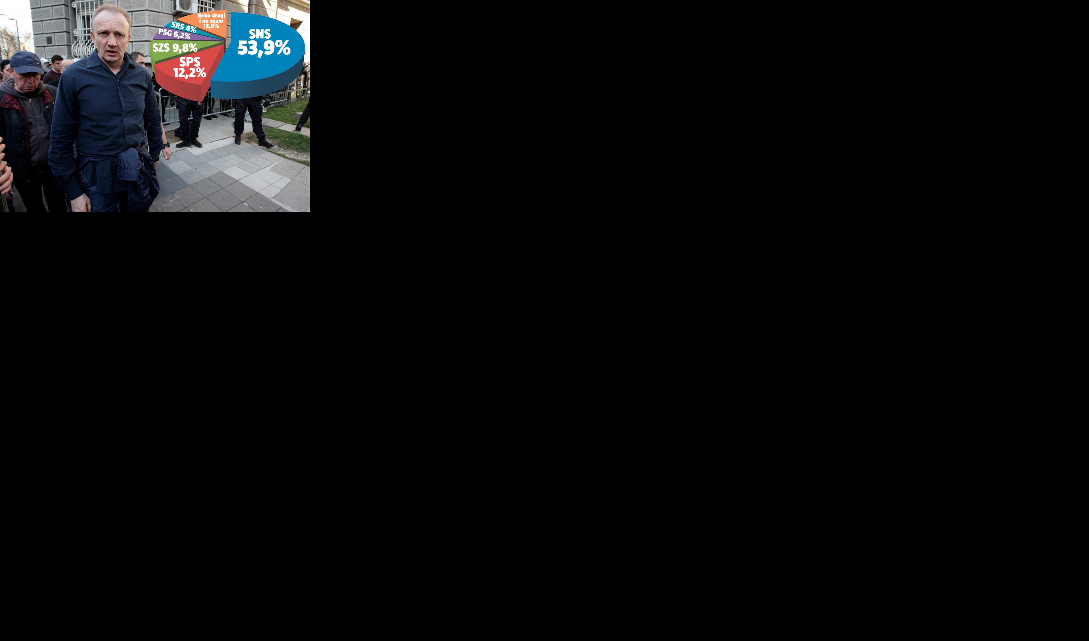 Kada bi u narednu nedelju bili održani vanredni parlamentarni izbori, Srpska napredna stranka Aleksandra Vučića ubedljivo bi pobedila sa čak 53,9 odsto dobijenih glasova. Istovremeno, Savez za Srbiju Dragana Đilasa ne bi osvojio ni 10 odsto glasova, što je njihov najslabiji rezultat u poslednjih šest meseci.