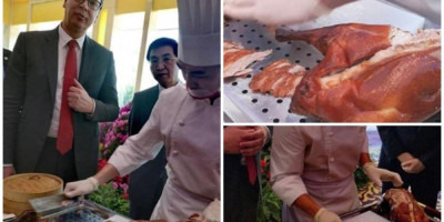 Na banketu je služen nadaleko poznat kineski specijalitet - pekinška patka.