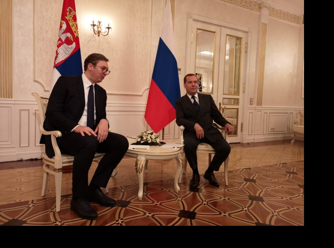 "Sve te stvari idu zaista dobro, u pet rečenica smo se saglasili", rekao je Vučić i dodao da je i Medvedev zadovoljan zbog privrednog rasta koji beleži Srbija.