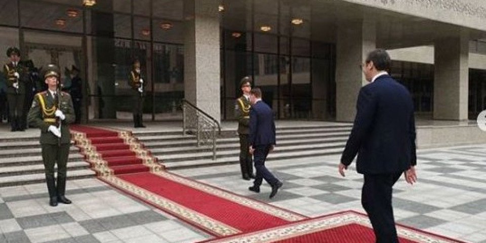 Lukašenko je večeru priredio za predsednike i premijere zemalja učesnica Drugih evropskih igara u Minsku, kojoj prisustvuju i premijer Ruske Federacije Dmitri Medvedev i predsedavajući Predsedništva BiH Milorad Dodik. Foto: Tanjug