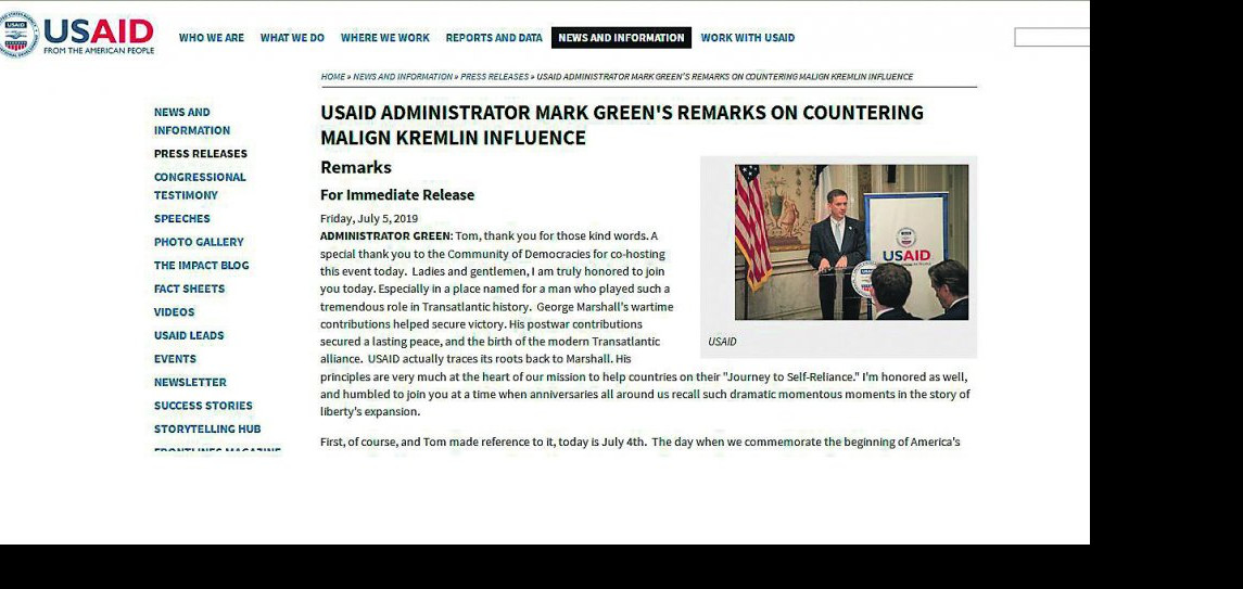 Izveštaj USAID predstavljen je 4. i 5. jula, a o njemu je govorio direktor ove organizacije Mark Grin. Kako je navedeno na sajtu USAID, Grin je sa predstavnicima G7 u Parizu razmatrao koncept suprotstavljanja "zlonamernom uticaju Kremlja"!?!