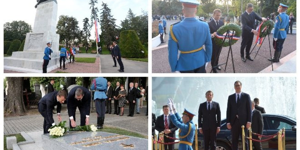 Polaganjem venaca na Spomenik braniocima Beograda 1914-1918 na Novom groblju, predsednici Srbije i Francuske Aleksandar Vučić i Emanuel Makron odali su počast stradalima u Prvom svetskom ratu.