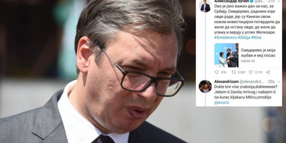 Podsetimo, posle Vučićeve objave o poseti Smederevu i Železari, gde je predsednik napisao kako je to važan dan za Srbiju, Smederevo i radnike koji rade i žive u tom gradu, korisnik koji je na Tviteru upisan pod nadimkom "Alexandrizam" uputio je jezivu poruku njegovoj deci.