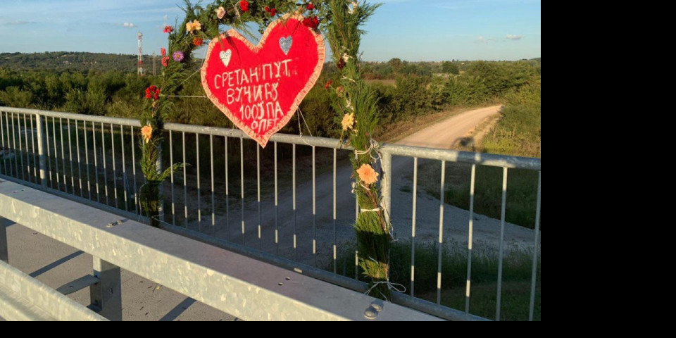 - Srećan put, Vučiću! 1005 pa opet - stoji na tabli koja je ukrašena cvećem.