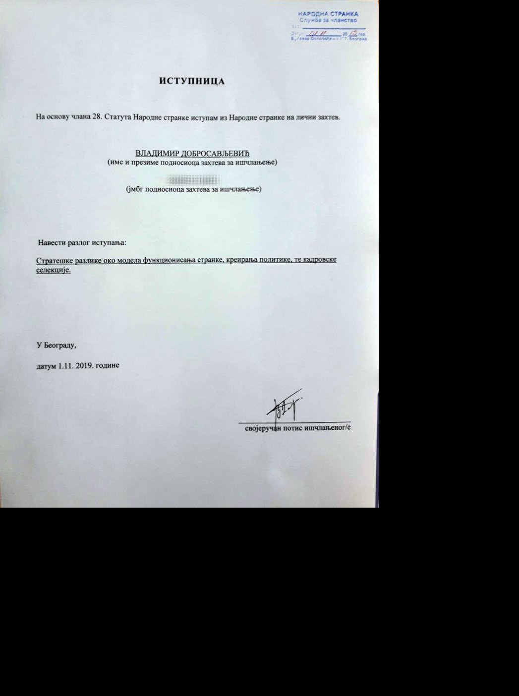 Kako saznajemo, Dobrosavljevic je otišao zbog neslaganja s elitističkim načinom kako trijumvirat Jeremić - Jovanović - Ponoš vodi NS.