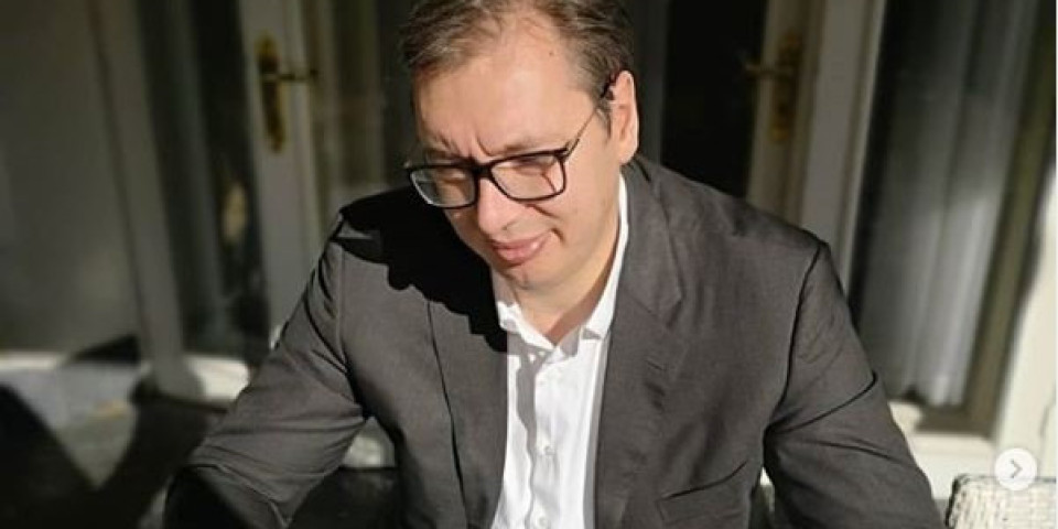 Na fotografijama se vidi da predsednik uživa u punjenim paprikama, a kako u piše u opisu one su okrepljenje pred put u Ženevu.