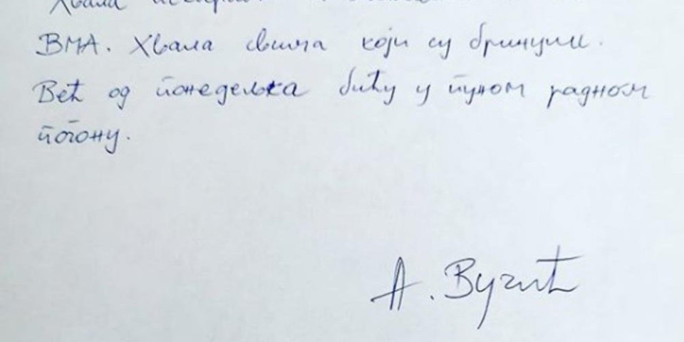 "Hvala lekarima i zaposlenima na VMA. Hvala svima koji su brinuli. Već od ponedeljka biću u punom radnom pogonu", napisao je on.