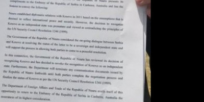 Republika Nauru je sa najmanja nezavisna republika na svetu sa površinom od 21,3 kilometara kvadranih, ali su oni pod uticajem Australije među prvima priznali Kosovo već u aprilu 2008.