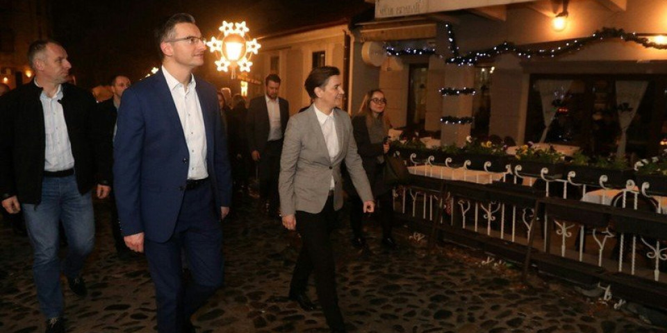 Brnabić je sinoć priredila večeru u čast premijera Slovenije Marjana Šareca. Brnabićeva je Šareca dočekala u Skadarliji. On je sinoć doputovao u Beograd, a na aerodromu "Nikola Tesla" ga dočekao ministar za rad, zapošljavanje, boračka i socijalna pitanja Zoran Đorđević.