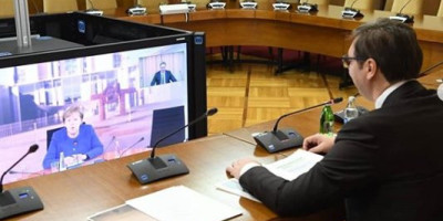 Predsednik Srbije i nemačka kancelarka su u razgovoru razmotrili pitanje dijaloga o normalizaciji odnosa između Beograda i Prištine i, u tom kontekstu, uvođenju taksi privremenih institucija u Prištini 2018. godine na robu iz centralne Srbije i Bosne i Hercegovine.
