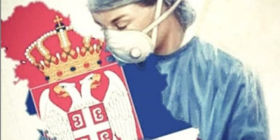 Na fotografiji objavljenoj na instagram profilu "avucic" vidi se zdravstveni radnik u zaštitnom odelu i sa zaštitnom maskom na licu kako grli Srbiju.