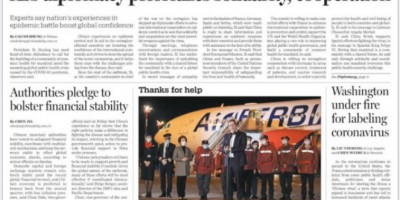 Takođe, ovaj medij navodi i da je predsednik Si izdao naredbu Ministarstvu spoljnih poslova da se pomogne svim zemljama koje se bore sa najvećom zdravstvenom krizom do sad. Kineski predsednik poziva na solidarnost i apeluje da se svi uključe u borbu sa koronavirusom u svetu.