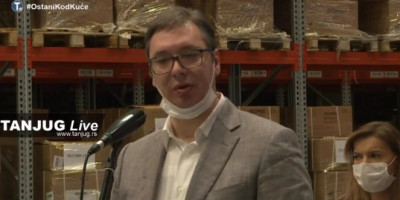 Predsednik Srbjie Aleksandar Vučić obišao je danas carinsko skladište Milšpeda gde se nalazi veliki broj respiratora, oksigenatora, zaštitnih naočara, zaštitni viziri, antivirusne maske n95, hirurške maske i rukavice