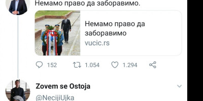 Na objavu predsednika Vučića na Tviteru u kojoj piše: "Nemamo pravo da zaboravimo", sa današnjeg polaganja venaca za Dan sećanja na žrtve ustaškog koncentracionog logora Jasenovac u Drugom svetskom ratu, ovaj Đilasov simpatizer odgovorio je pretnjom.