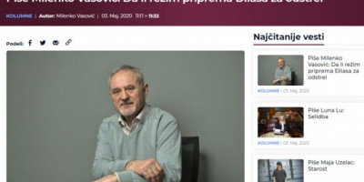 Kolumna Milenka Vasovića pod naslovom: "Da li režim priprema Đilasa za odstrel", objavljena je kao uvertira "performansa u suzama" Dragana Đilasa.