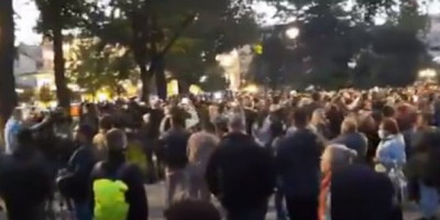 Okupljeni sa pištaljkama, trubama, šerpama i dobošima, prvo su tačno u 20.00 časova gromkim aplauzom odali zahvalnost medicinskim radnicima za sve što su učinili za vreme epidemije koronavirusa, a onda su krenuli da prave živi lanac oko zgrade Predsedništva.