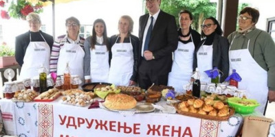 - Hvala vam na divnom dočeku! - Predsednik Republike Srbije Aleksandar Vučić sa predstavnicama Udruženja žena iz Pinosave, "Pinosavke", u manastiru Pinosava kod Smederevske Palanke - napisao je Vučić na Instagram profilu buducnostsrbijeav.