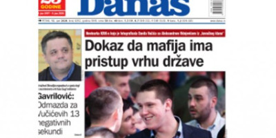 Đilasovski niskotiražni tabloid "Danas" na naslovnoj strani sutrašnjeg broja nastavlja monstruoznu kampanju protiv Danila Vučića, sina predsednika Srbije, koju je započeo portal Krik, pokušavajući bez ikakvih dokaza da ga prikaže kao mafijaša