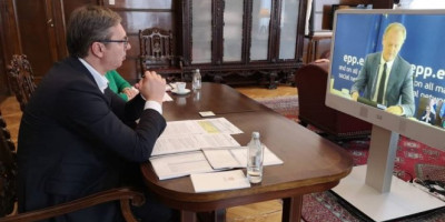 Vučić je fotografije sa video konferencijskog razgovora objavio na Instagram nalogu buducnostsrbijeav.