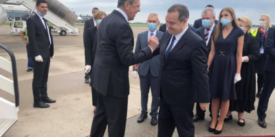 Šefa ruske diplomatije na beogradskom aerodromu je dočekao ministar spoljnih poslova Ivica Dačić.