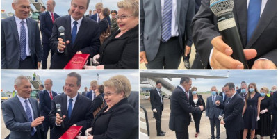 Neposredno pred izlazak ruskog šefa diplomatije Sergeja Lavrova iz aviona na aerodromu Nikola Tesla, ambasador Ruske Federacije Aleksandar Bocan Harčenko uručio je Dačiću specijalni poklon.