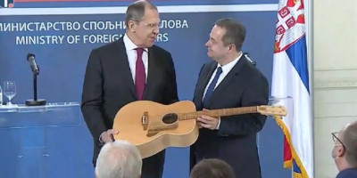Ministar spoljnih poslova Ivica Dačić nije danas krio zadovoljstvo posetom šefa ruske diplomatije Sergeja Lavrova, pa mu je na kraju zajedničke konferencije za novinare poklonio gitaru.
