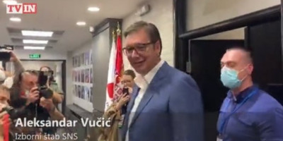 Vučić je oko 18 i 30 došao u izborni štab Srpske napredne stranke koji se nalazi u prostorijama stranke na Novom Beogradu.