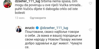 Čovek koji je danas na Instagramu prokleo decu predsednika Srbije Aleksandra Vučića i poželeo im da "crknu" od koronavirusa, je sin pristalice SDA Sandžaka, koji je u blskim odnosima sa liderom te stranke Sulejmanom Ugljaninom, nezvanično saznaje Informer