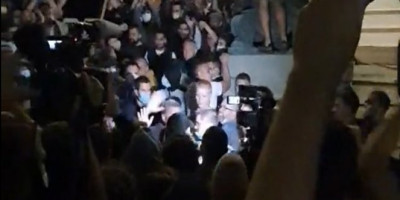 Prilikom silaženja niz stepenice, demonstranti su ga išamarali.