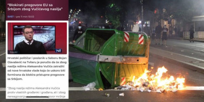 Hrvatski političar i poslanik u Saboru Bojan Glavašević na Tviteru je poručio da će zbog "nasilja režima Aleksandra Vučića zatražiti od nove hrvatske vlade koja će uskoro biti formirana da blokira pristupne pregovore sa Srbijom"?!