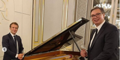 Vučić je na svom profilu na Instagramu objavio fotografije iz Palate, gde se vidi da je u društvu Makrona i pijaniste Mišela Dalbera.