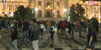 Građani dolaze iz pravca Trga Nikole Pašića u grupicama od po troje-četvoro, Većina nosi maske koje su propisane merama za borbu protiv virusa korona. Situacija je i dalje mirna, policijske snage se i dalje nalaze iza Narodne skupštine, kao i u Pionirskom parku.