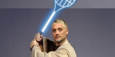 Jovanović je okačio fotografije članova svoje porodice na kojima nose bokserske rukavice, drže rekete i teniske trofeje, a tu je i njegova fotka na kojoj drži reket umesto mača, a iznad je natpis "Čedaj".