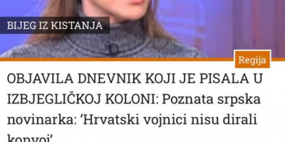 Tragična ispovest novinarke RTS, koja je avgusta 1995. u vreme progona Srba iz Hrvatske imala 17 godina, u kojoj opisuje strahote koje je doživela zajedno sa svojom porodicom i još 250.000 sunarodnika, privukla je veliku pažnju medija u Srbiji.