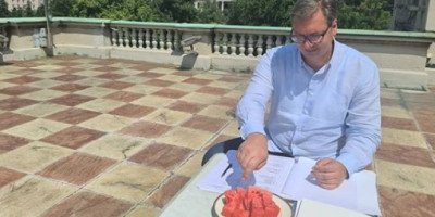 Predsednik Srbije Aleksandar Vučić. posle polaganja kamena temeljca za novu kovid bolnicu u Vojnom kompleksu "Zemun ekonomija" u Batajnici, odgovarao je i na novinarska pitanja