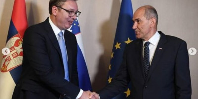 U okviru Bledskog foruma predsednik Srbije Aleksandar Vučić sastao se sa Janezom Janšom, predsednikom vlade Slovenije, objavljeno je na instagram profilu predsednika "buducnostsrbijeav"