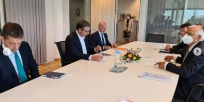 Po ustaljenoj proceduri, nakon bilateralnih sastanka dve delegacije sa EU posrednicima u dijalogu, za 12 časova zakazan je i trilateralni sastanak predsednika Srbije Aleksandra Vučića, premijera Kosova Avdulaha Hotija, šefa diplomatije EU Žosepa Borela i specijalnog predstavnika EU Miroslava Lajčaka.