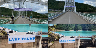 Na mostu je osvanuo transparent sa porukom na engleskom "Predsedniče Tramp, kosovski Srbi zahvaljuju Vam na tome što donosite mir", a poruka na brani jezera Gazivode je još sažetija i emotivnija, i glasi "Jezero Tramp".