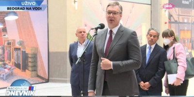 Predsednik Srbije Alekdandar Vučić nakon obilaska završnih radova na "Galeriji Belgrade" u Beogradu na vodi odgovarao je na pitanja novinara