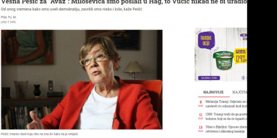 Vesna Pešić u Sarajevu u intervjuu za Avaz.ba htela je da se dodvori Bošnjacima, a zapravo nesvesno uputila Vučiću najveće komplimente naglašavajući da se on značajno razlikuje od današnjih opozicionara jer on nikada ne bi isporučio Miloševića, Karadžića i Mladića Hagu